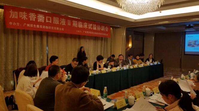 2018年3月10日,中药自然药物第6类新药加味香薷口服液Ⅱ期临床试验计划讨论会在广州裕通大旅馆顺遂召开。受申办方广州厚生康乐药物研究有限公司委托,广州bmw11222医药生物手艺股份有限公司认真本临床试验的项目治理和临床监查事情。