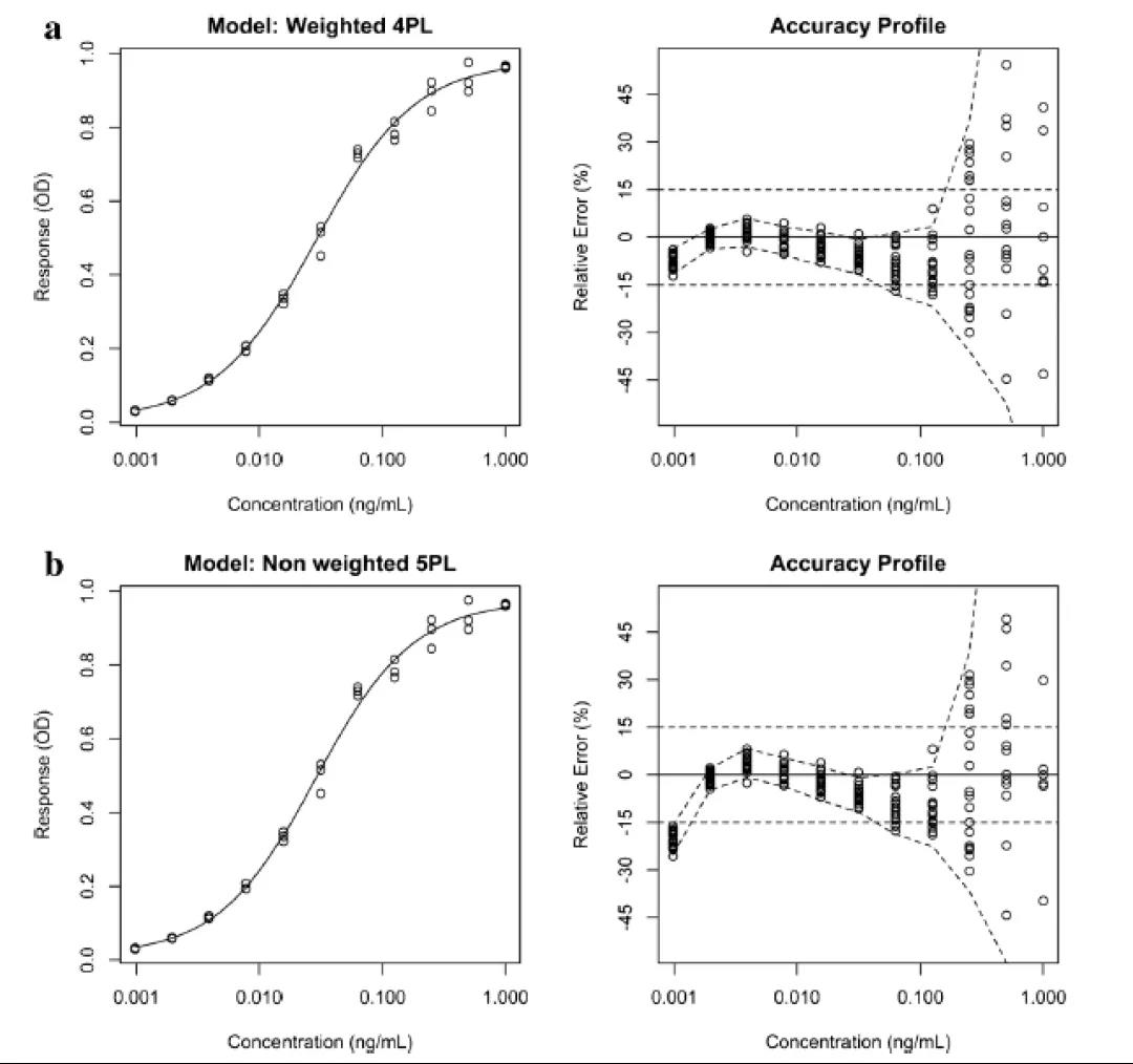 У׼ÇúÏß³£ÓõķÇÏßÐÔÄ£×ÓÊÇ4PLºÍ5PL£¬¿ÉÒÔͨ¹ýÐí¶à×Ô¶¯»¯Èí¼þʵÏÖÄâºÏ¡£ËäÈ»¿ÉÒÔʹÓÃÆäËûµÄ·ÇÏßÐÔÄ£×Ó£¬µ«ÐëÉóÉ÷ÇÒÓ¦¶Ô4PLºÍ5PLÄ£×Ó²»ÊÊÓõÄÌØÊâÇéÐμÓÒÔ֤ʵ¡£