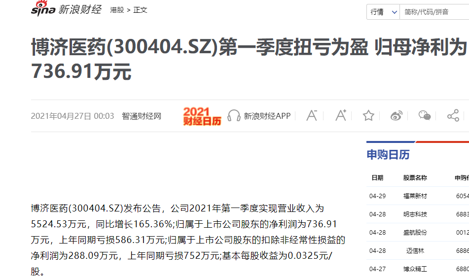 别的,新浪财经、网易财经等新媒体、自媒体平台,亦对bmw11222医药2021年1季度报告举行了报道。