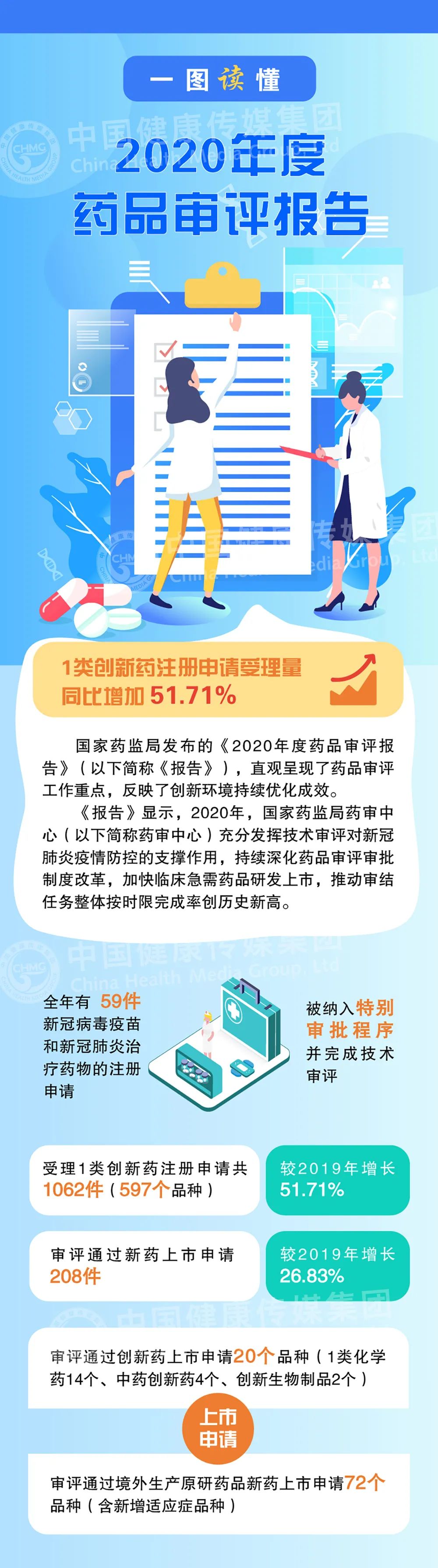 2020整年有59件新冠病毒疫苗和新冠肺炎治疗药物的注册申请被纳入特殊审批程序并完成手艺审评;受理1类立异药注册申请共1062件(597个品种),较2019年增添51.71%;审评通过新药上市申请208件,较2019年增添26.83%;审评通过立异药上市申请20个品种(1类化学药14个、中药立异药4个、立异生物制品2个),审评通过境外生产原研药品新药上市申请72个品种(含新增顺应症品种)……今天(6月21日),国家药监局官网宣布了《2020年度药品审评报告》。